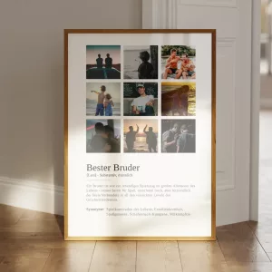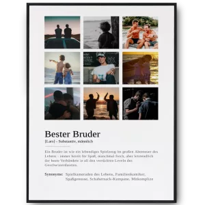 Gestalte ein einzigartiges Poster als persönliches Geschenk für deinen Bruder. Lass deiner Kreativität freien Lauf, indem du besondere Erinnerungen, gemeinsame Interessen oder Insider-Witze in das Design einfließen lässt. Ein individuell gestaltetes Poster wird nicht nur seine Wände schmücken, sondern auch eine emotionale Verbindung zu euren gemeinsamen Erlebnissen herstellen.
