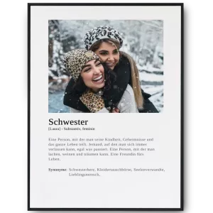 Hier findest du dein Definitionsposter für ganz besondere Menschen. Als Geschenk für fast jeden Anlass, finde die richtigen Worte und schaffe persönliche Erinnerungen.