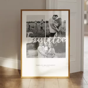 Du suchst nach dem idealen Geschenk für deine Liebsten oder möchtest eine gemütlichere und familiäre Atmosphäre in deinem Zuhause schaffen? Unsere Fotocollagen sind die perfekte Lösung für dich. Entdecke sorgfältig gestaltete Vorlagen, die das Erstellen von Fotocollagen spielend leicht machen. So funktioniert es: Wähle dein bevorzugtes Motiv aus, öffne unseren Produkteditor, lade deine Fotos hoch und füge eine persönliche Widmung hinzu. Auf diese Weise entsteht garantiert eine Collage, die nicht nur dich, sondern auch Freunde oder Familie begeistern wird. Wenn du es lieber minimalistisch magst, schau in unserer Kategorie ‘Personalisierte Poster’ vorbei. Dort findest du moderne, skandinavisch inspirierte Motive, die du ebenfalls nach deinen Wünschen anpassen kannst. Egal, ob bunte Fotocollage oder schlichtes Line Art Poster – Kunstwerke, die an gemeinsame Erlebnisse erinnern, machen aus unserem Zuhause einen besonderen Ort.